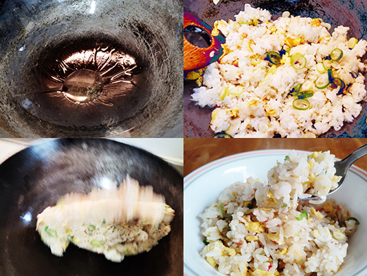 冷やご飯は軽くレンジで温めたほうが味が良くからみます。